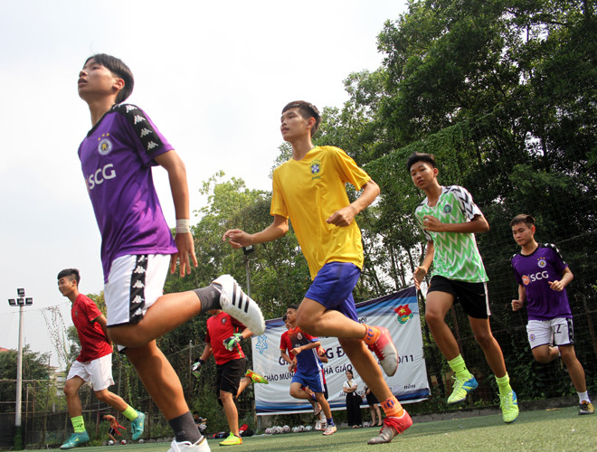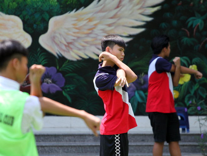 [ẢNH] Đội nắng luyện tập, chờ ngày tranh tài giải bóng đá học sinh Hà Nội 2018