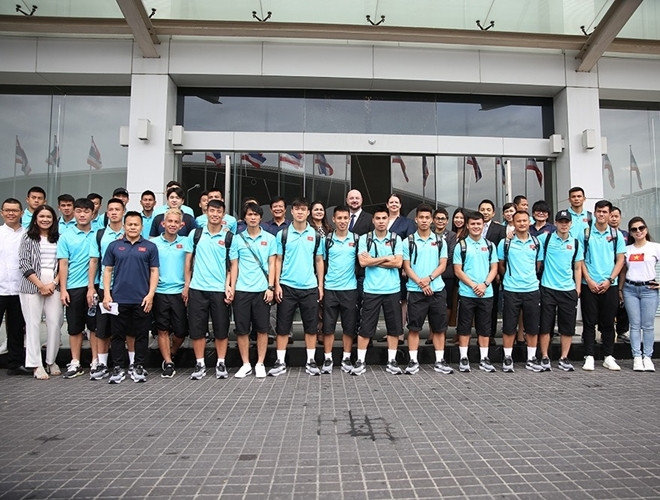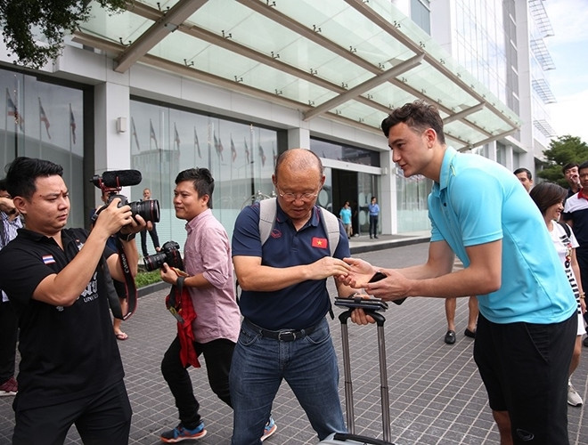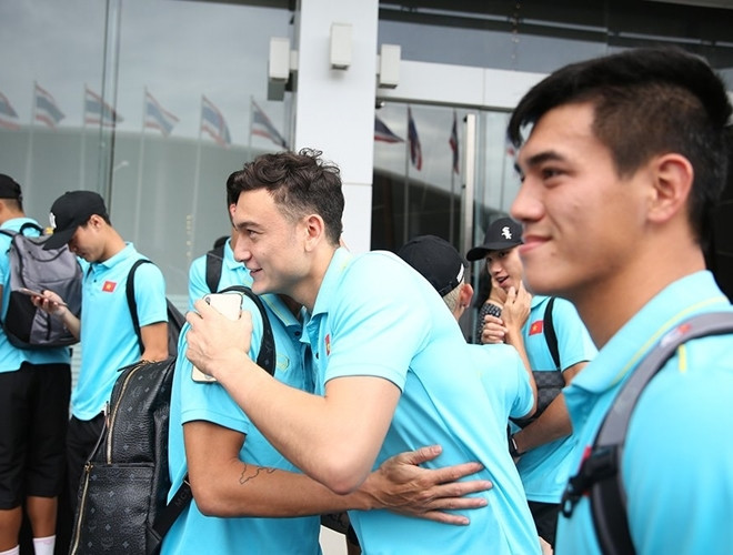 ANTD.VN - Các thành viên ĐT Việt Nam trao cho nhau những cái ôm nồng ấm cùng lời chúc may mắn, trước khi chia tay vào sáng nay 6-9-2019 tại Thái Lan.