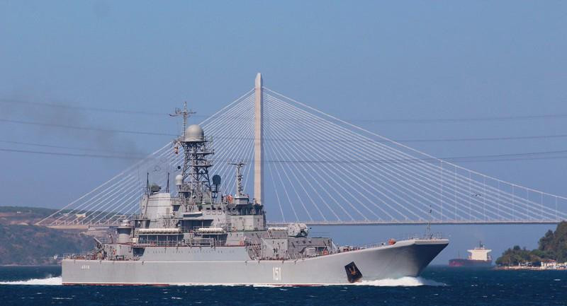 ANTD.VN -  Tàu vận tải đổ bộ lớp Ropucha của Lữ đoàn dù số 197 thuộc Hạm đội Biển Đen Ceasar Kunikov của Nga đã xuất hiện trên eo biển Bosphorus, chở hàng hóa hạng nặng hướng về Địa Trung Hải, đích đến chính là Syria.