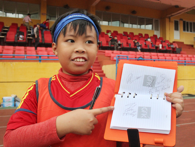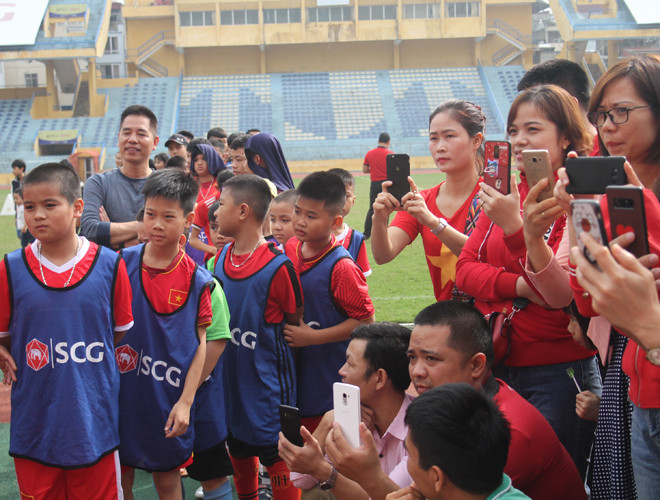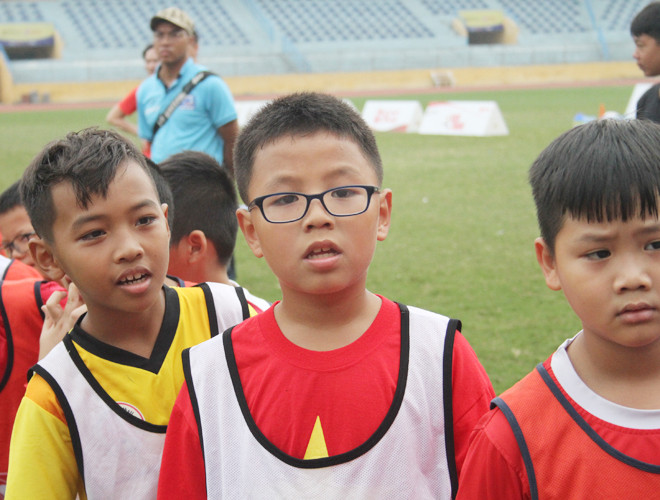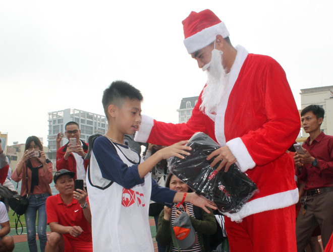 ANTD.VN - Sáng 23-12, hơn 100 em nhỏ hào hứng tham gia chương trình "Bóng đá và sẻ chia", đã rất vui vẻ khi được ba tuyển thủ quốc gia gồm Duy Mạnh, Đức Huy và Thành Chung hóa thân làm ông già Noel tặng quà, giao lưu.