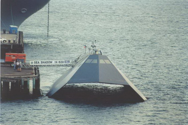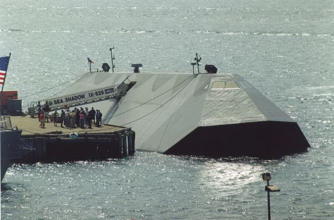 ANTD.VN - IX529 Sea Shadow là một con tàu được chế tạo với mục đích thử nghiệm công nghệ tàng hình, bề ngoài của nó ở góc nhìn chính diện trông rất giống với máy bay tiêm kích F-117A Night Hawk.