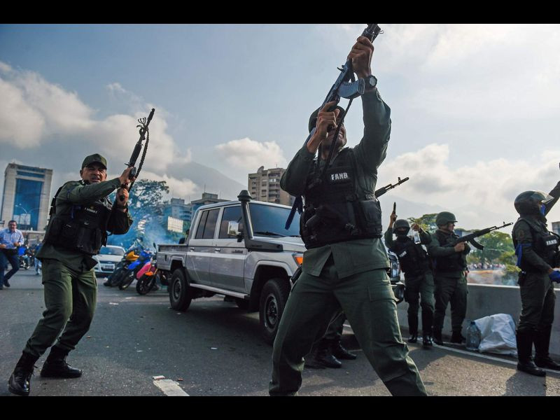 [ẢNH] Binh sĩ phe đối lập Venezuela đấu súng với lính trung thành của ông Maduro