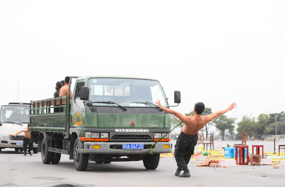 [Ảnh] Giữa ngày đông tháng giá, xem Cảnh sát cơ động mình trần kéo xe tải