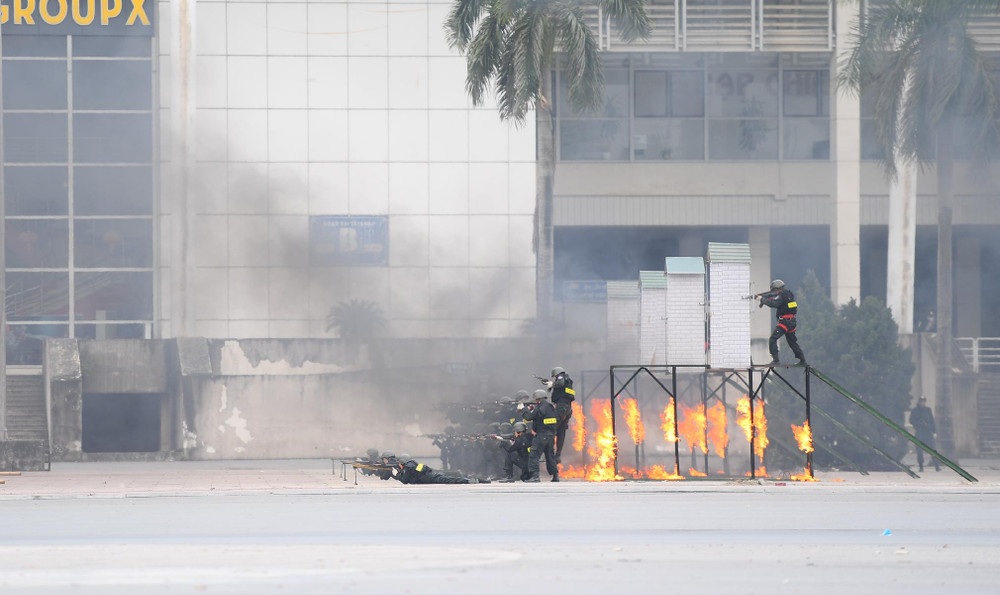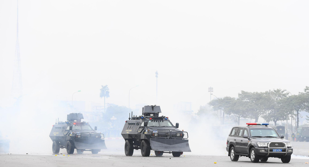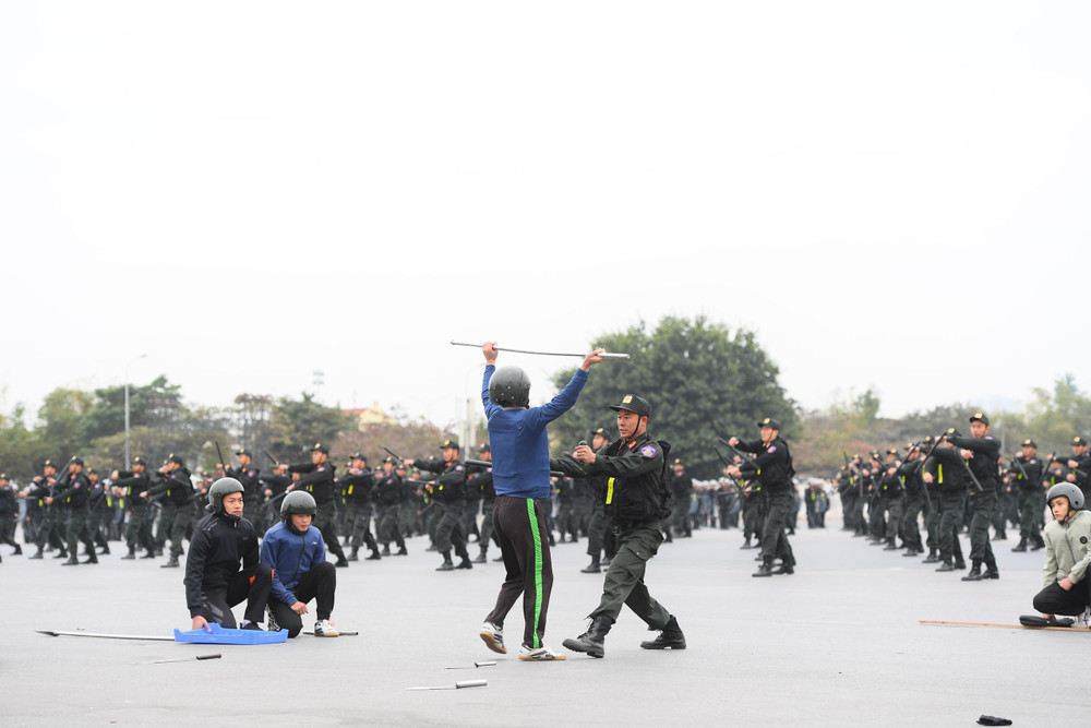 ANTD.VN - Như tin ANTĐ đã đưa tin, sáng 10-1, tại Quảng trường Sân vận động Quốc gia Mỹ Đình, Hà Nội, Lễ xuất quân diễn tập phương án bảo vệ Đại hội XIII của Đảng đã được Bộ Công an chủ trì phối hợp với lực lượng quân đội tổ chức. 6.000 CBCS của cả 2 lực lượng đã tham gia lễ xuất quân, diễn tập trong đó, có lực lượng CSCĐ với những màn diễn tập thực binh thể hiện sức mạnh của "quả đấm thép", tinh thần vượt khó khăn, hoàn thành nhiệm vụ.
