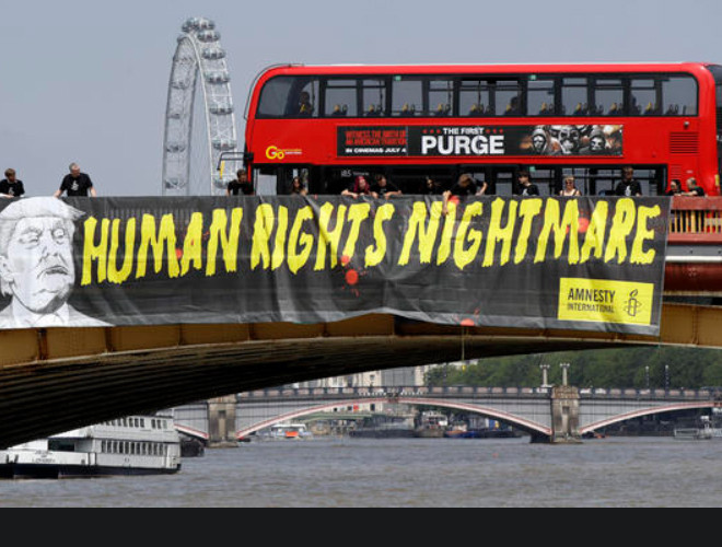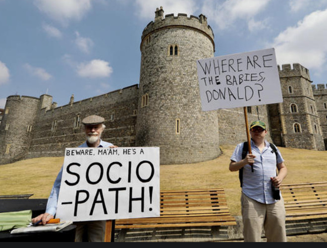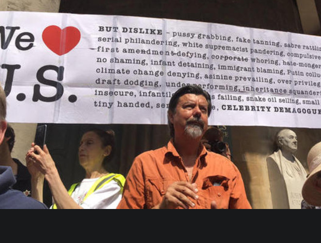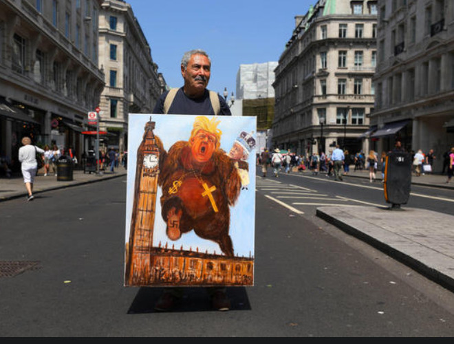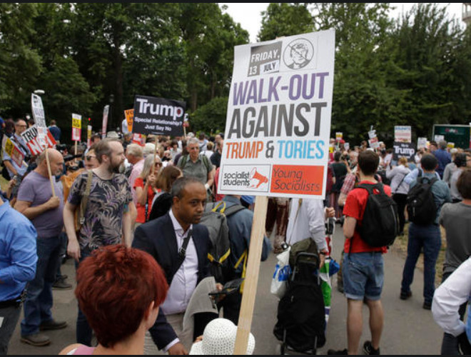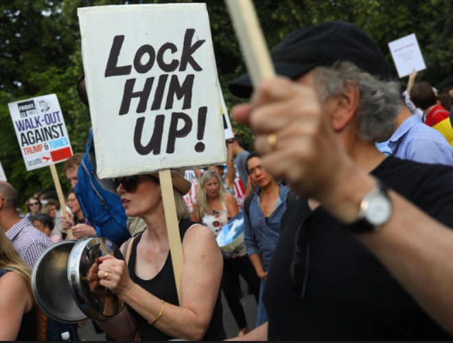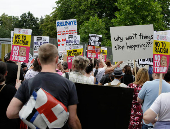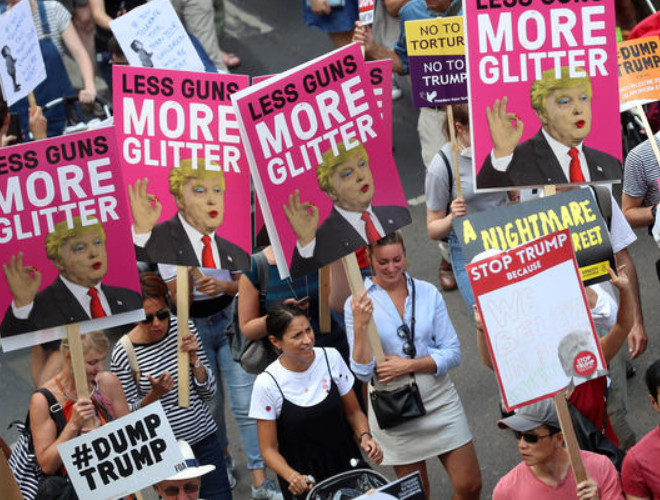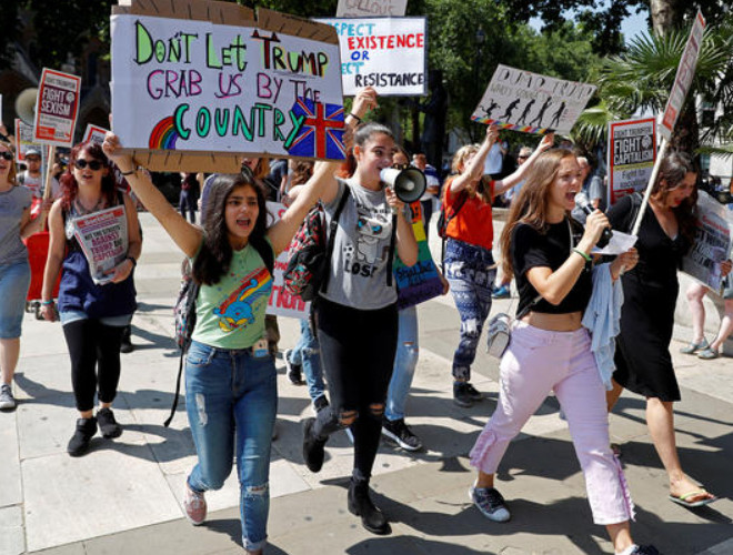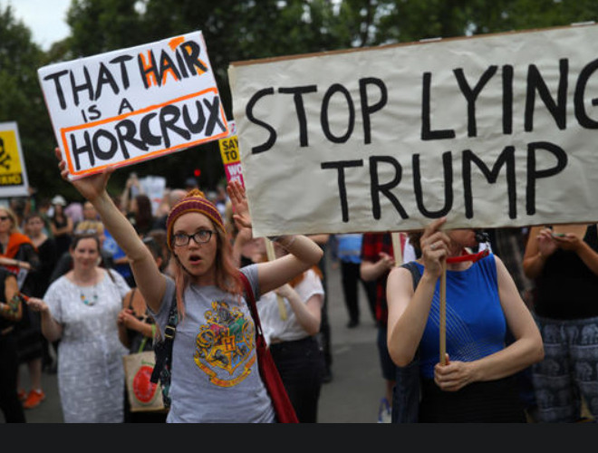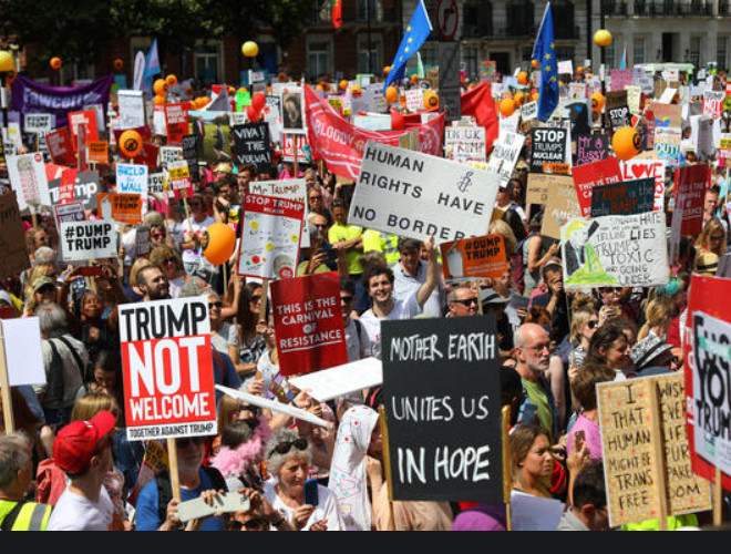 ANTD.VN - Nhiều người xuống đường phố ở London vẫy biểu ngữ và hô khẩu hiệu chống Tổng thống Trump khi lần đầu tiên ông đến thăm Anh với tư cách tổng thống Mỹ.