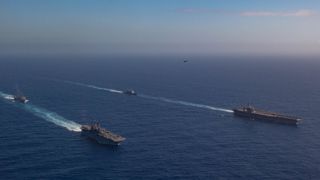 [ẢNH Hàng không mẫu hạm, tuần dương và khu trục Mỹ trên Biển Đông