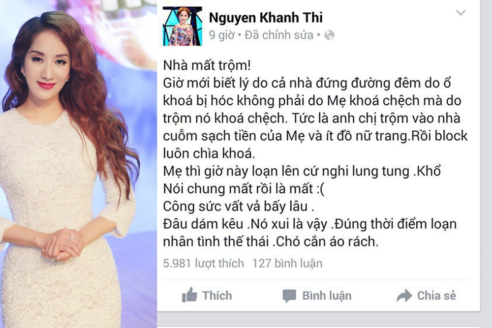 ANTD.VN - Bởi sở hữu khối tài sản lớn nhưng lại thường xuyên vắng nhà nên nhiều sao Việt từng nằm trong "tầm ngắm" của những tên trộm tinh vi và liều lĩnh. Trước Ngọc Trinh, không ít sao Việt như: Nhật Kim Anh, Minh Hằng,... đã bị trộm đột nhập vào nhà riêng, lấy đi nhiều tài sản trị giá hàng tỷ đồng.