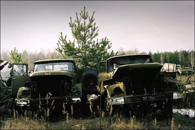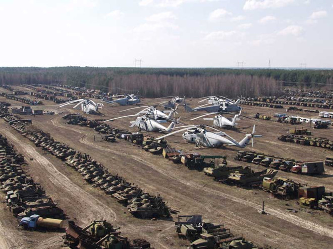 [ẢNH] Hàng ngàn phương tiện quân sự bị vứt bỏ sau thảm họa Chernobyl