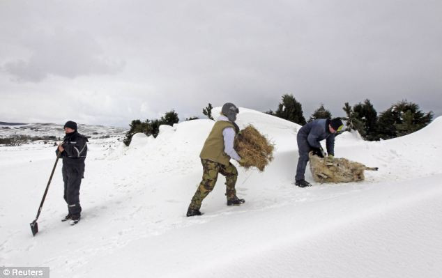 Cỏ khô được đưa về làm lương thực trong nỗ lực cứu sống những chú cừu còn sống sót