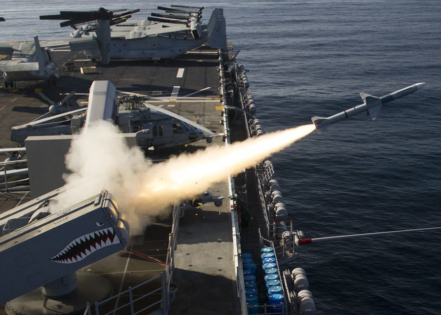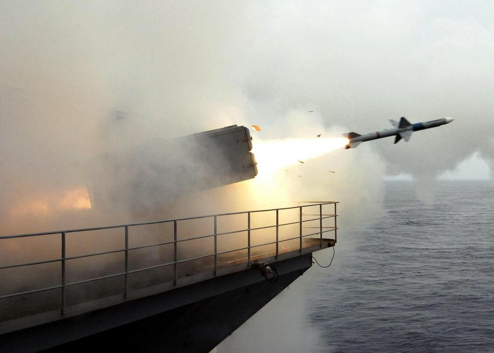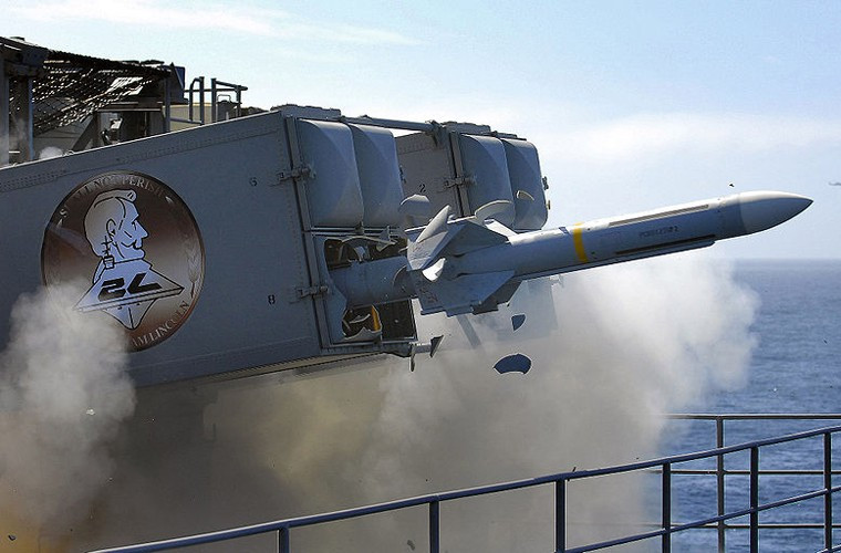 ANTD.VN - RIM-7 Sea Sparrow là hệ thống tên lửa phòng không tầm ngắn làm nhiệm vụ đánh chặn trên các chiến hạm và tàu sân bay của Mỹ. Mỗi tàu sân bay thường được bố trí từ 4-6 hệ thống này để bảo vệ bên cạnh tổ hợp pháo phòng không Phalanx.