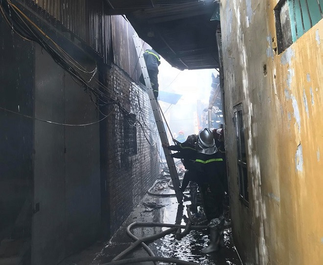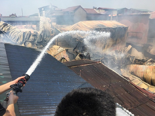 [Ảnh] Hiện trường vụ cháy 7 xưởng sản xuất gỗ ở Thạch Thất