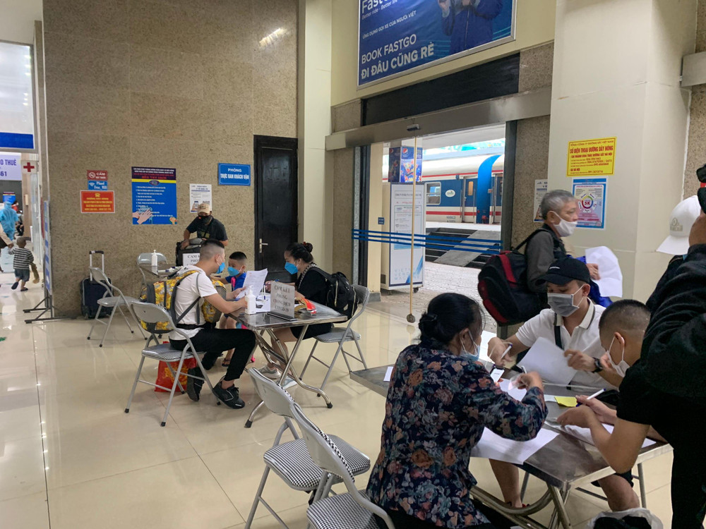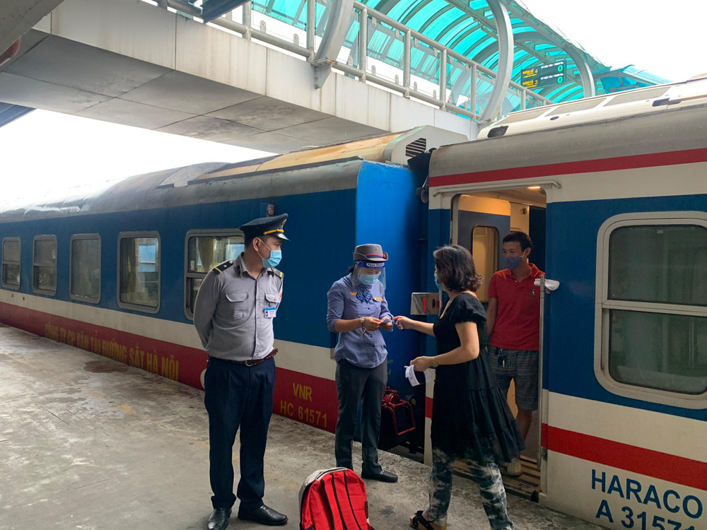 ANTD.VN - 15h20 chiều nay (13-10) chuyến tàu SE5 khởi hành từ Ga Hà Nội đi thành phố Hồ Chí Minh đã khởi hành. Toàn bộ 103 hành khách xuất phát từ Ga Hà Nội phải có xét nghiệm âm tính với Covid 19, đã tiêm 2 mũi. Công tác kiểm soát phòng chống dịch được thắt chặt, đảm bảo tuyệt đối an toàn.