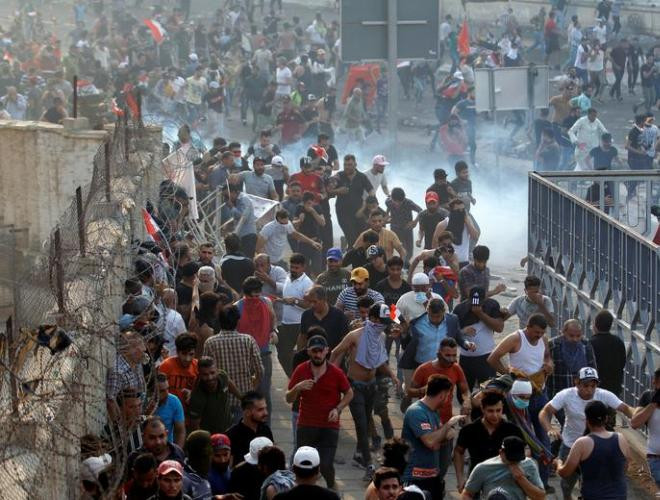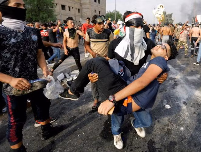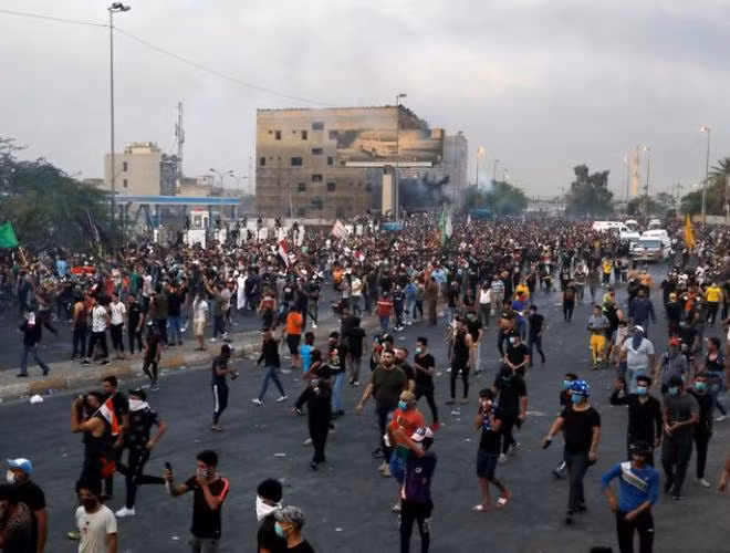 ANTD.VN - Thất nghiệp, tham nhũng, dịch vụ công nghèo nàn là nguyên nhân dẫn đến những cuộc biểu tình rầm rộ ở thủ đô Baghdad và nhiều vùng trên khắp lãnh thổ Iraq. Cảnh sát chống bạo động đã sử dụng hơi cay, vòi rồng, đạn cao su và cả đạn thật để trấn áp người biểu tình. Đã có 19 người thiệt mạng và hơn 500 người bị thương trong những cuộc biểu tình đã biến thành bạo động này.