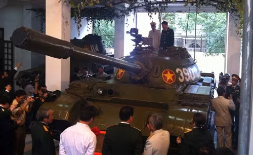 ANTD.VN - Ngày 30-4-1975, chiếc tăng Type-59 số hiệu 390 của trung đoàn thiết giáp 203 thuộc Đại đội 4, Tiểu đoàn 1, Lữ đoàn Tăng Thiết giáp 203, Quân đoàn 2, đã húc tung cổng, tiến vào dinh Độc Lập, ghi dấu thời khắc kết thúc cuộc chiến tranh, thống nhất đất nước kéo dài hơn 20 năm.