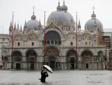 ANTD.VN - Khách du lịch và người dân thành phố Venice của Italy đã phải đi giày cao cổ và di chuyển trên những lối đi tạm thời để vượt qua những khu vực bị ngập trong thành phố.