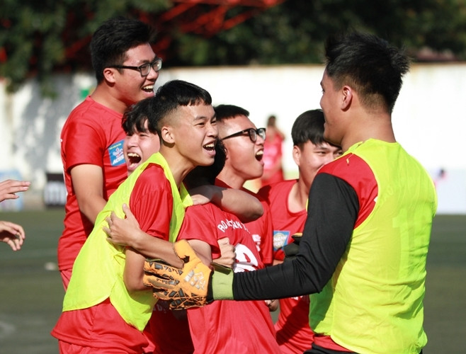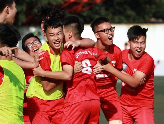 [ẢNH] Khoảnh khắc vỡ òa trên chấm luân lưu của ĐKVĐ Trương Định trước Hoài Đức A