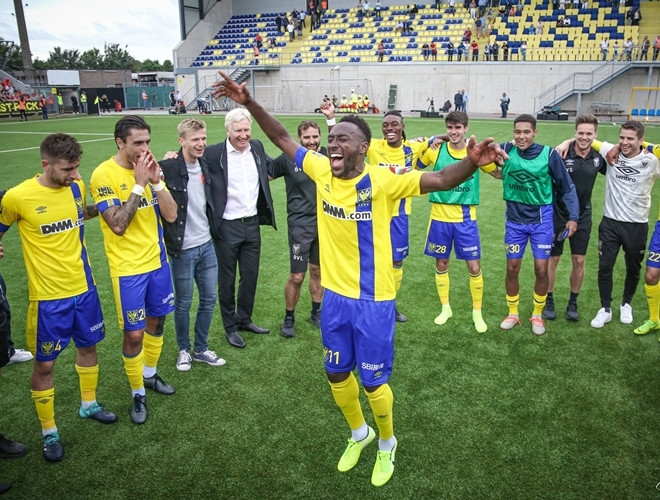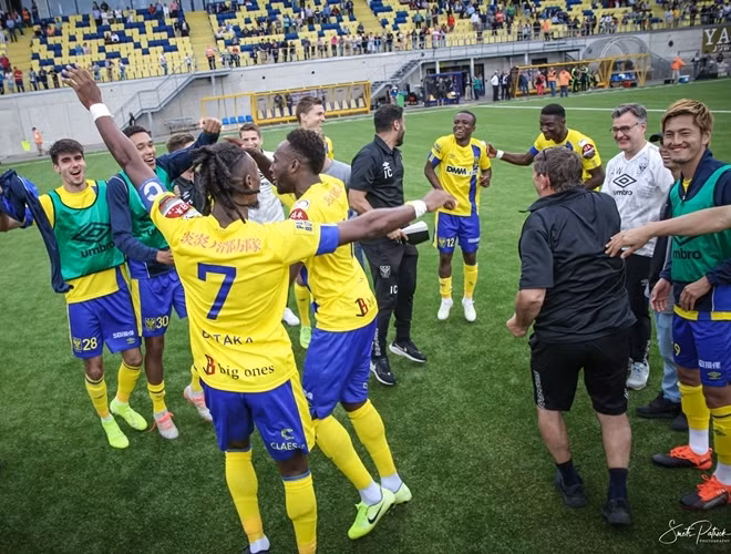 ANTD.VN - Không được xếp thi đấu trong trận thắng Standard Liege hôm 11-8, tiền đạo Nguyễn Công Phượng vẫn hòa mình vào không khí hứng khởi cùng các đồng đội Sint-Truidense (STVV) khi tan trận.