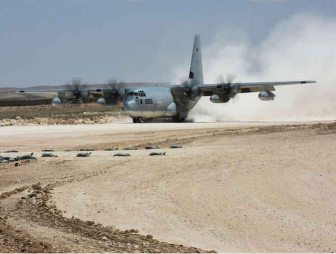ANTD.VN - Không Quân Mỹ đã hé lộ một số hình ảnh của trực thăng "đa chức năng" MV-2 Osprey và máy bay vận tải hạng trung C-130J Hercules đang hoạt động trên lãnh thổ Syria. Tuy nhiên, chưa xác định rõ địa điểm của căn cứ quân sự này.