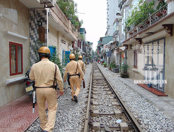 ANTD.VN - Sáng 10-10, CATP Hà Nội đã ra quân xử lý tình trạng vi phạm lấn chiếm hành lang an toàn đường sắt tại khu vực “phố đường tàu” thuộc địa bàn các quận Ba Đình, Hoàn Kiếm, trước mắt, hạn chế người đi bộ tại khu vực trên. Ngay lập tức đoạn đường sắt lộn xộn quán cafe trước kia đã trở lại vẻ yên bình.