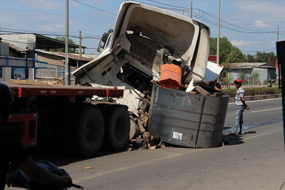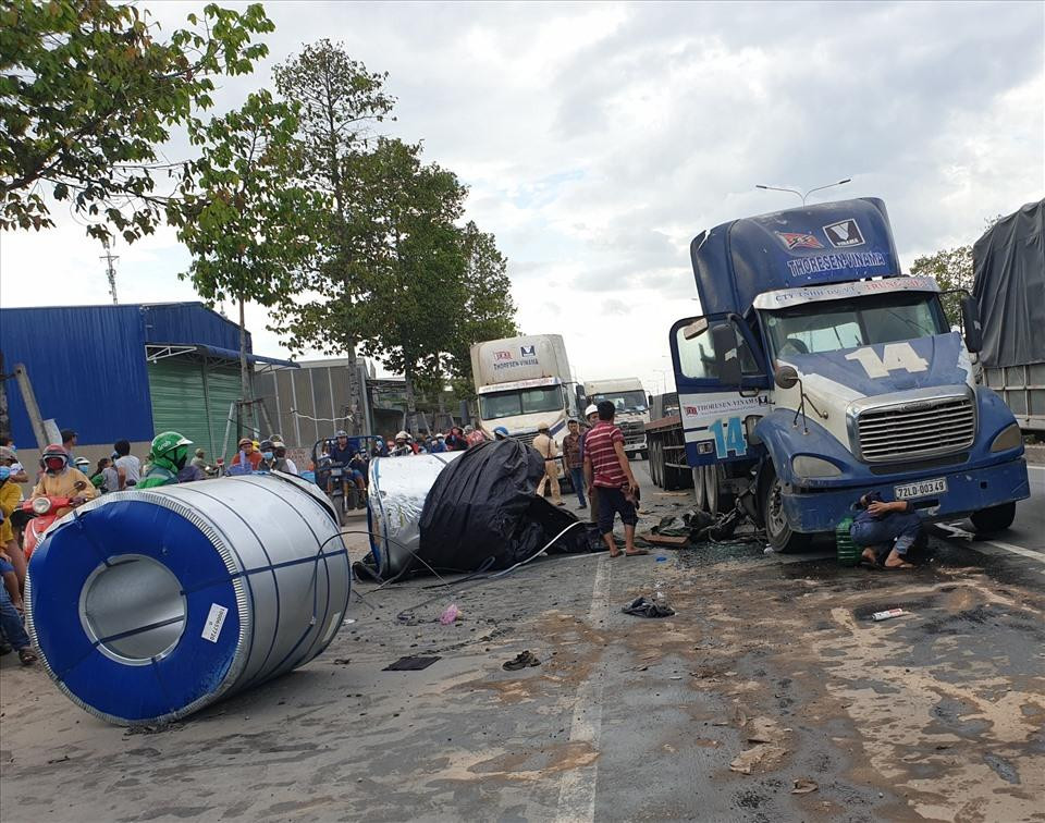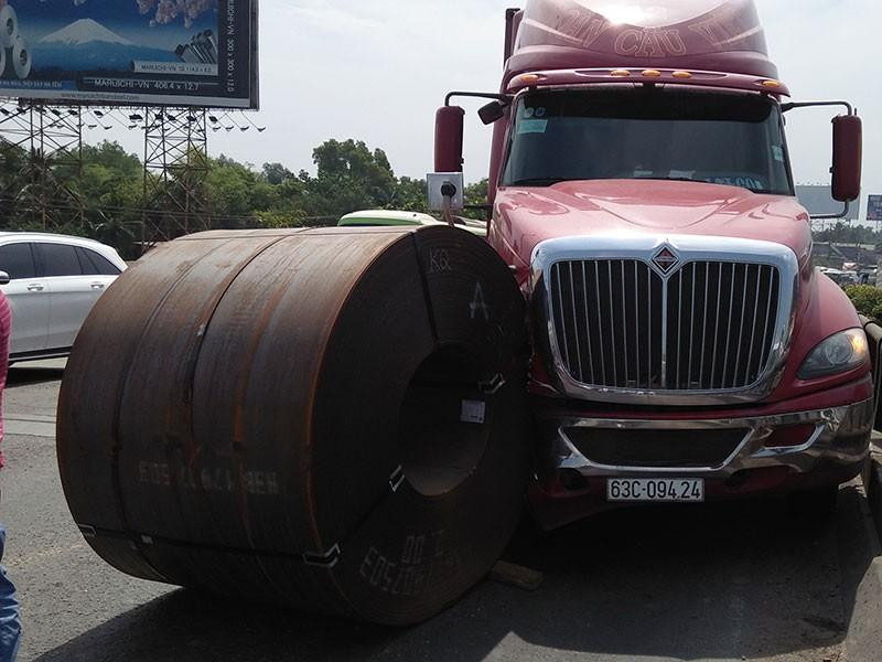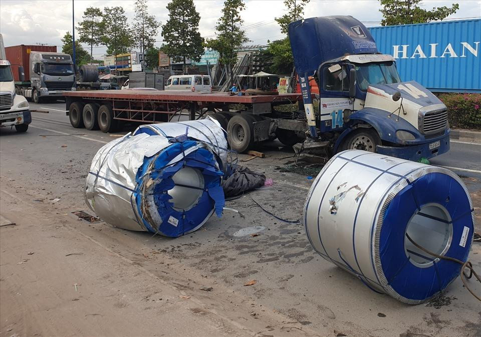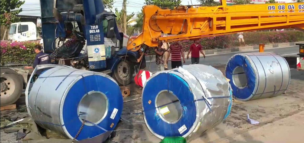 ANTD.VN - Chỉ cần một cú phanh gấp, hay pha ôm cua không chuẩn của lái xe, những cuộn thép tròn nặng hàng tấn nằm trên rơ-moóc xe đầu kéo dễ dàng biến thành "xe lu", rơi xuống và san phẳng mọi thứ trên đường lăn của nó, giống như tử thần di động rình rập.