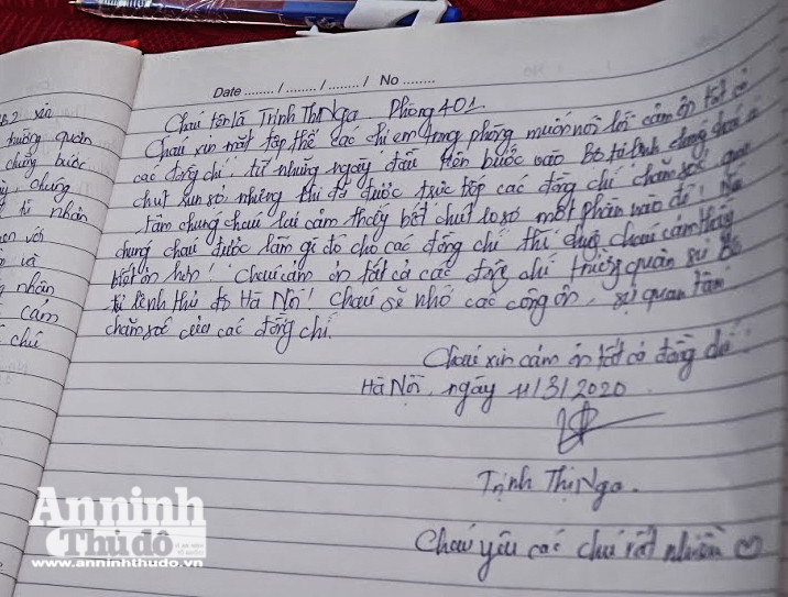 ANTD.VN - "Khi khó khăn, Tổ quốc không bao giờ bỏ rơi chúng ta", "Cháu yêu các chú bộ đội". Đó là lời cảm ơn ấm áp tình cảm của những người đã kết thúc thời gian cách ly phòng dịch Covid - 19 được về với gia đình tại trường Quân sự Bộ Tư lệnh Thủ đô, hôm nay 11-3.