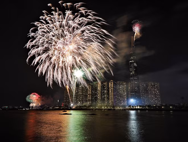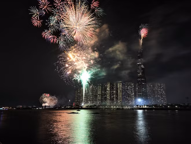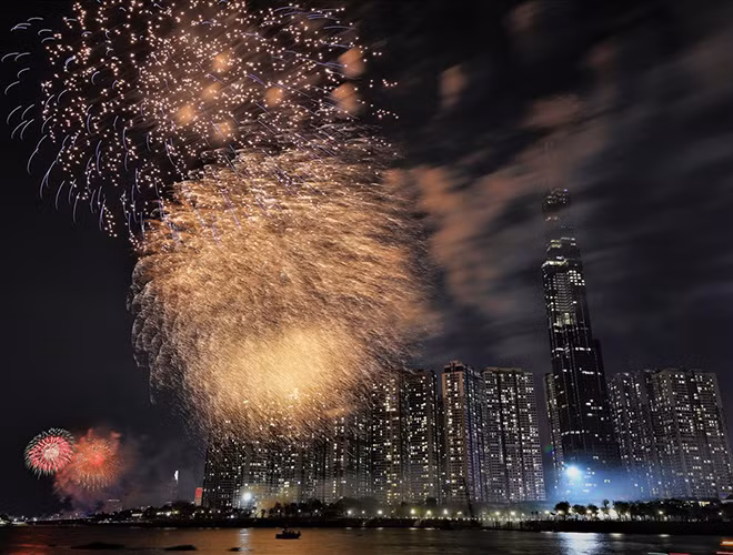 [ẢNH] Mãn nhãn với màn pháo hoa rợp trời tối 30-4 mừng ngày thống nhất