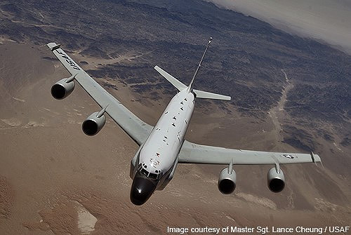 ANTD.VN - Chiếc máy bay RC-135 trang bị các cảm biến quang điện tử hiện đại chuyên phát hiện tên lửa và vũ khí hạt nhân của Mỹ được phát hiện đang hoạt động trên bầu trời Vùng Vịnh.