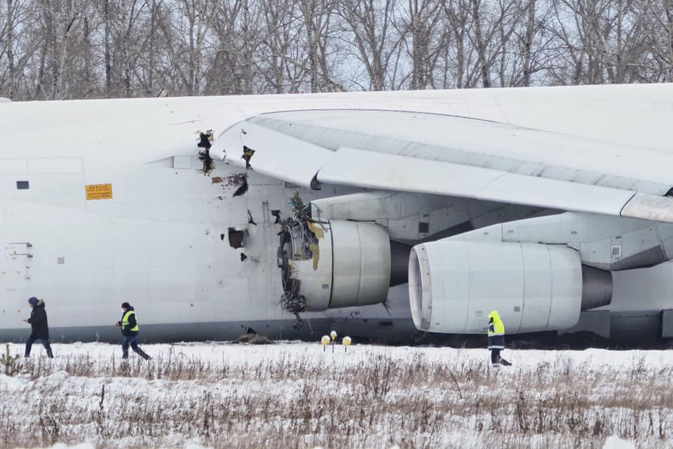 [ẢNH] Máy bay khổng lồ An-124 Nga văng mất động cơ, phải hạ cánh khẩn cấp