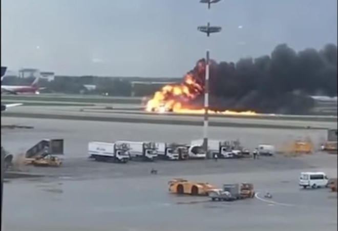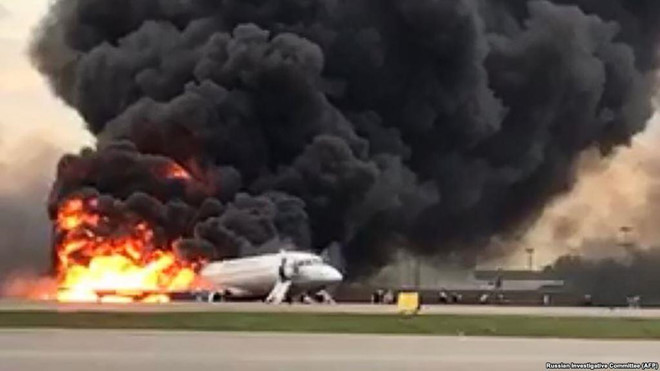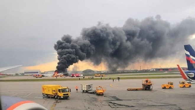 Hiện trường máy bay Superjet bốc cháy ở Moscow, ít nhất 41 người thiệt mạng
