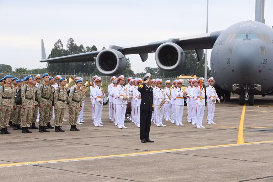 [ẢNH] Máy bay vận tải khổng lồ C-17 đưa quân nhân Việt Nam đi làm nhiệm vụ ở Nam Sudan