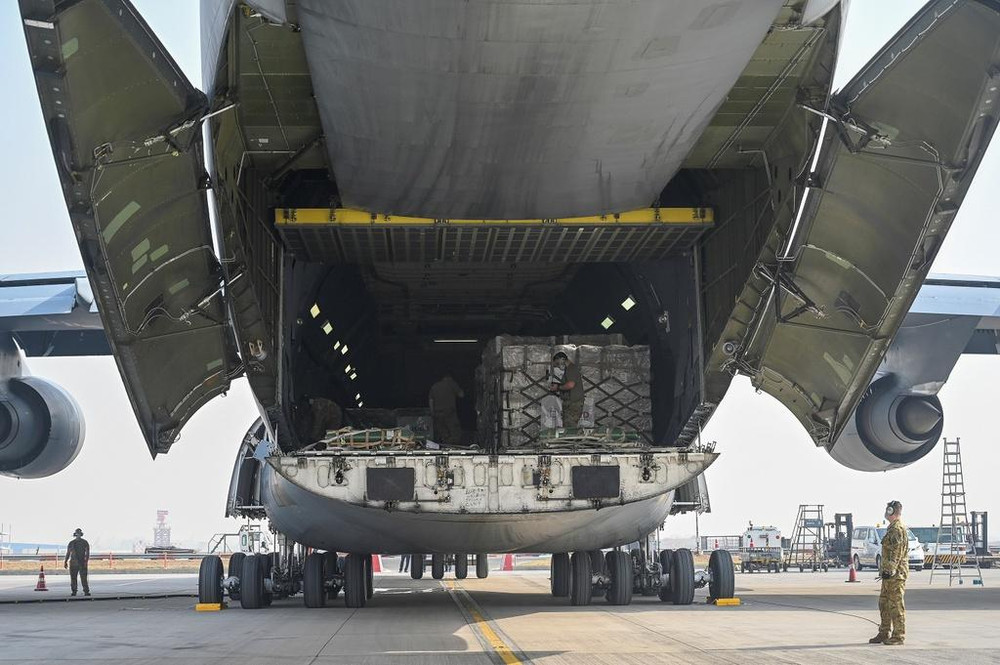 [ẢNH] Mỹ dùng máy bay vận tải khổng lồ viện trợ vật tư y tế cho Ấn Độ