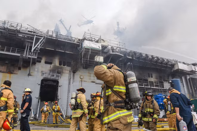 [ẢNH] Mỹ khẩn cấp "gọi tái ngũ" tàu Peleliu thay thế chiếc Bonhomme Richard vừa bị thiêu rụi?