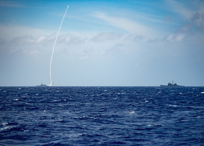 ANTD.VN - Hai chiến hạm Mỹ tham gia cuộc tập trận bắn đạn thật đánh chặn trên biển Philippines. Giới quan sát nhận định, Washington đang gửi thông điệp rõ ràng tới Bắc Kinh trong việc duy trì tự do hàng hải trên Biển Đông.