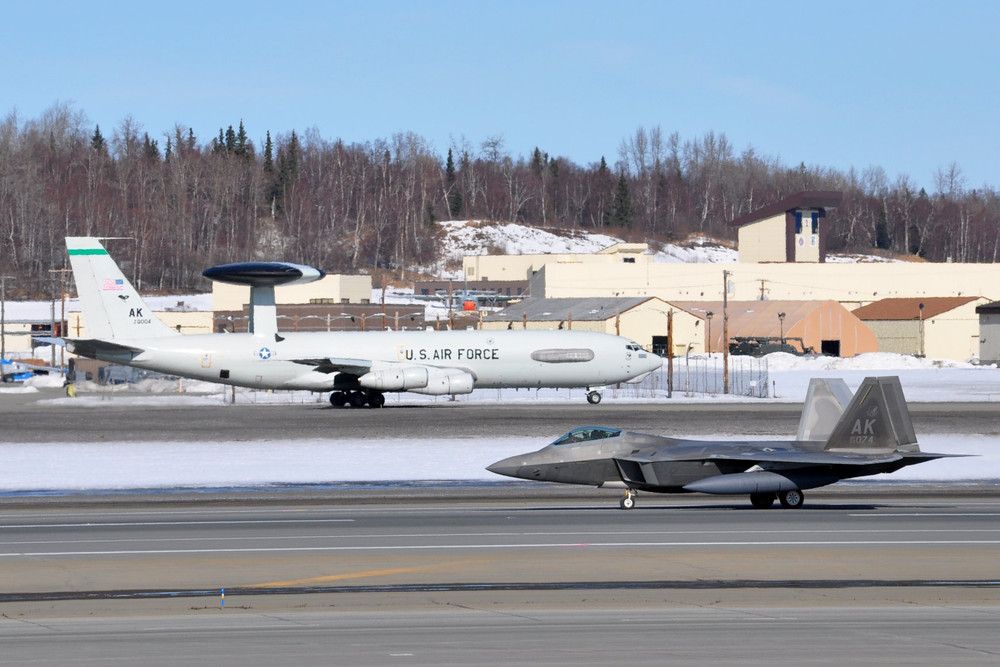 ANTD.VN - Không lực Mỹ từng huy động nhiều dòng tiêm kích tham gia màn diễu binh "Voi đi bộ" trên đường băng, tuy nhiên việc sử dụng chiến đấu cơ tàng hình F-22A Raptor là chưa có tiền lệ.