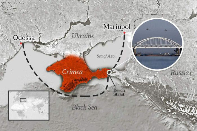 ANTD.VN - Việc xây dựng một cây cầu chắn ngang eo biển Kerch - lối dẫn vào biển Azov và chỉ để lại một tuyến giao thông ngay dưới chân cầu được xem là "đòn hiểm" của Nga nhằm kiểm soát toàn bộ vùng biển này.