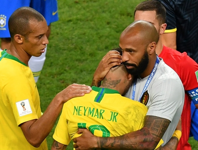 [ẢNH] Neymar nức nở gục vào vai "đối thủ" Thierry Henry sau khi bị loại