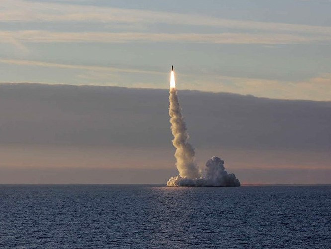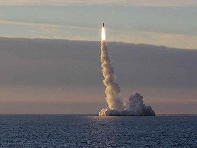 ANTD.VN - Tàu ngầm hạt nhân chiến lược Vladimir Monomakh của hải quân Nga vừa phóng liên tiếp 4 tên lửa đạn đạo xuyên lục địa hạt nhân Bulava, thể hiện khả năng sẵn sàng chiến đấu.