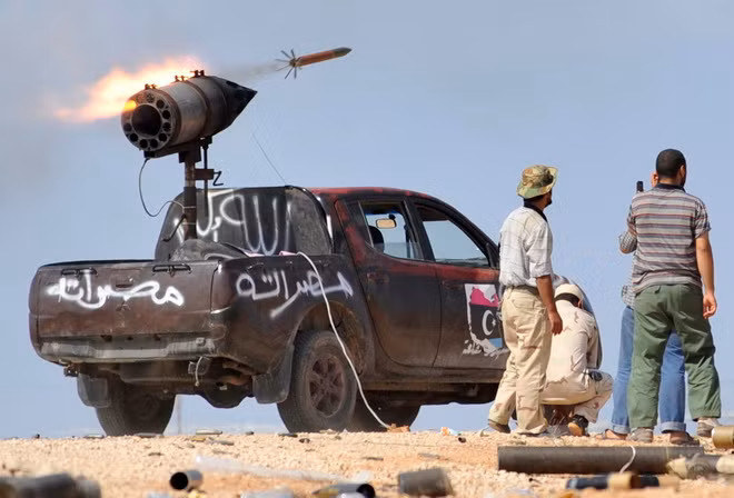[ẢNH] Nga học tập phiến quân Lybia chế tạo tổ hợp pháo phản lực trên xe bán tải