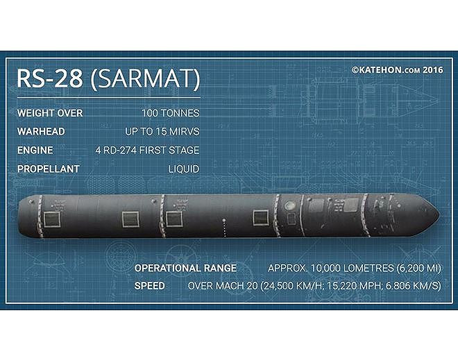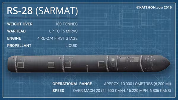 ANTD.VN - Với 15 đầu đạn hoạt động độc lập tương đương 50 triệu tấn thuốc nổ, siêu tên lửa hạt nhân RS-28 Sarmat hay còn gọi là "quỷ Satan 2" có thể thổi bay cả một quốc gia nhỏ. RS-28 Sarmat sẽ là thành phần nòng cốt trong lực lượng răn đe hạt nhân tương lai của Nga.