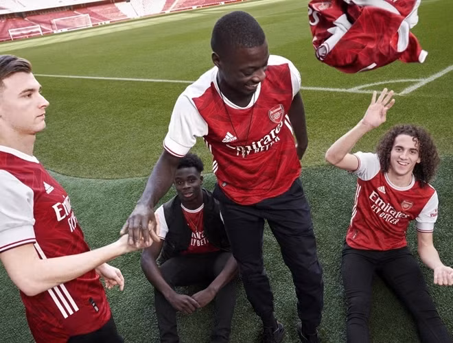ANTD.VN - Không được dự Champions League mùa tới nhưng dàn sao Arsenal như Pierre-Emerick Aubameyang, Alexandre Lacazette hay David Luiz vẫn xuất hiện tươi rói khi Pháo thủ trình làng mẫu áo thi đấu mới cho mùa 2020/21.