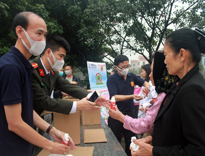 ANTD.VN - "Mấy ngày nay tìm mua nước rửa tay khô khó quá, lại không rõ có đảm bảo chất lượng hay không. Vì thế hôm nay được nhận sản phẩm rõ nguồn gốc xuất xứ, có thương hiệu như thế này, chúng tôi rất phấn khởi", chị Lê Thị Trang (34 tuổi, xã Hạ Mỗ, huyện Đan Phượng, Hà Nội) chia sẻ.