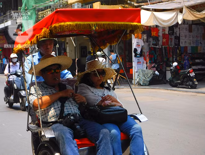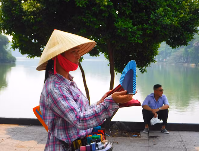 Nắng nóng 41 độ C, khách du lịch ở Hà Nội phải cầm quạt khi đi dạo