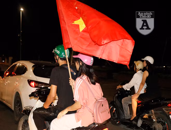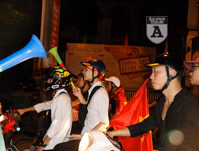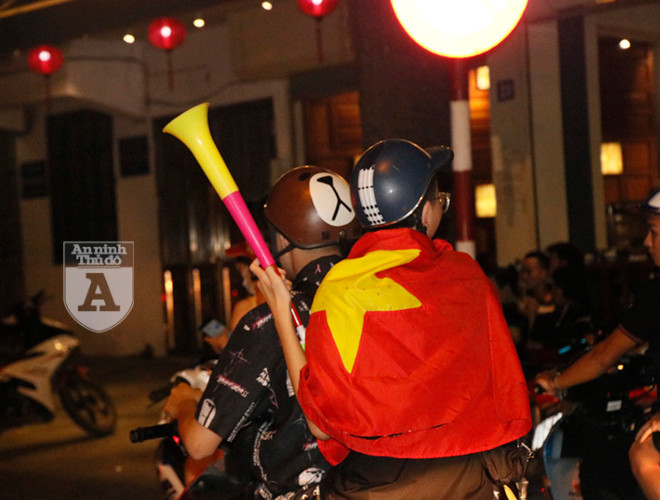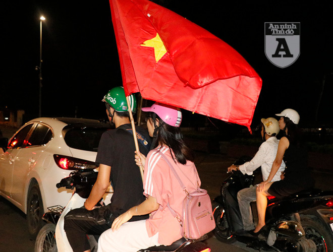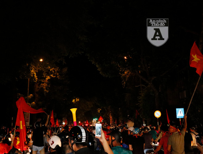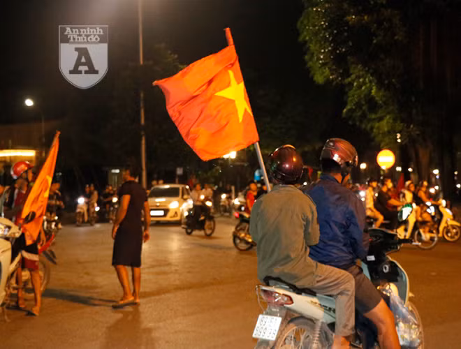 ANTD.VN - Ngay sau khi trận đấu giữa Việt Nam và Malaysia kết thúc, người hâm mộ bóng đá ở thủ đô đã ăn mừng bằng cách đi "bão". Khác với những lần trước, việc đi "bão" trở nên văn minh hơn nhưng vẫn không kém phần háo hứng. Mọi người tự nhắc nhau không đua xe, không nẹt pô, không lạng lách đánh võng.