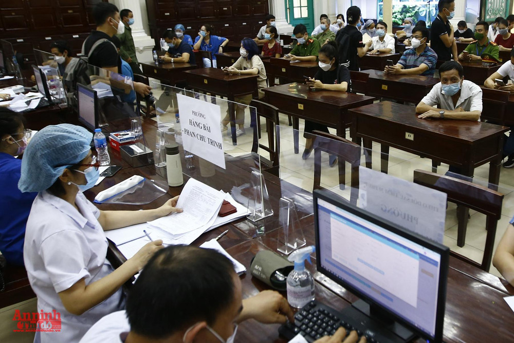 ANTD.VN - Hôm nay 28-7, Hà Nội tiếp tục chiến dịch tiêm chủng vaccine ngừa Covid-19 cho nhân dân. Người dân chia sẻ, việc đăng ký tiêm không gặp khó khăn gì và phấn khởi khi được tiêm sớm. Việc đảm bảo giãn cách, các quy định phòng dịch cũng được người dân phối hợp thực hiện nghiêm... hình ảnh phóng viên ANTĐ ghi nhận ở điểm tiêm tại trường Trường THCS Trưng Vương, quận Hoàn Kiếm.