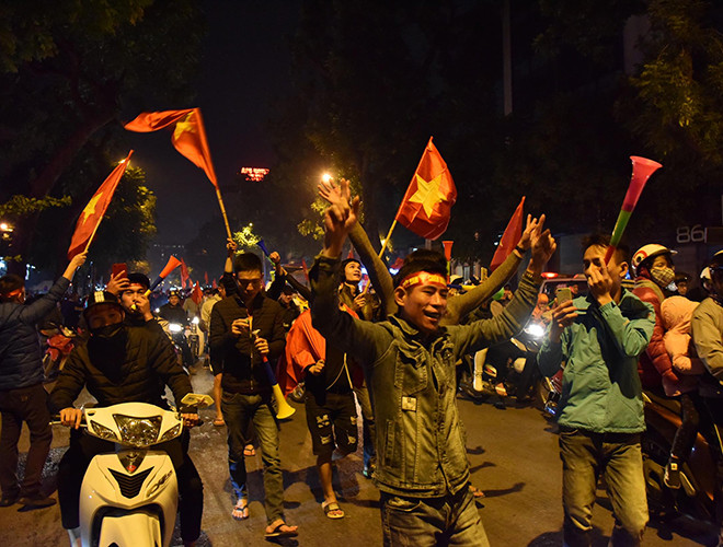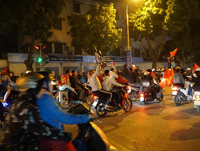 ANTD.VN - 60 năm chờ đợi, căng thẳng suốt 15 ngày sát cánh ủng hộ đội tuyển U22 Việt Nam với lịch thi đấu 7 trận liên tiếp, cuối cùng người hâm mộ bóng đá đã được tận hưởng cảm giác ngọt ngào của chiến thắng lịch sử. Hãy cùng Báo ANTĐ ngắm những hình ảnh ghi lại khoảnh khắc ấn tượng trong đêm ăn mừng chiến thắng đặc biệt này!