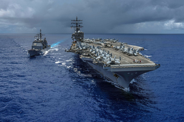 ANTD.VN - Siêu hàng không mẫu hạm USS Ronald Reagan mang theo hàng trăm máy bay cùng các tàu hộ tống thực hiện nhiệm vụ huấn luyện định kỳ, phô diễn sức mạnh trên biển Đông. Động thái này được cho là nhằm thách thức những tuyên bố chủ quyền phi pháp nhằm độc chiếm biển Đông.
