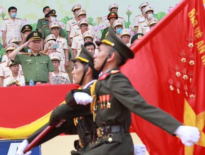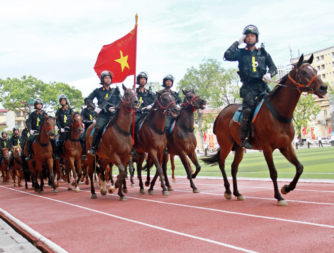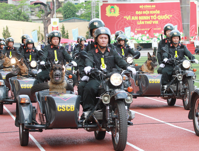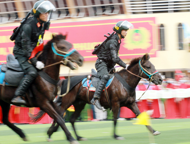 Xem lực lượng công an thi điều lệnh, sử dụng võ thuật chiến đấu