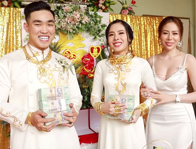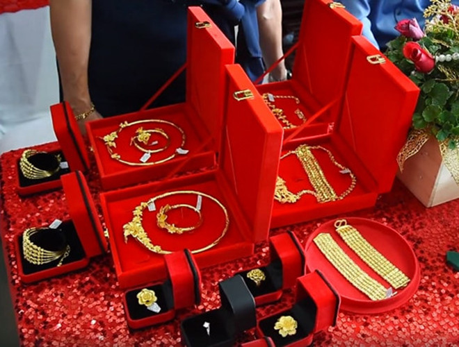 ANTD.VN - Thời gian gần đây, hình ảnh cô dâu Nguyễn Thị Ngọc Ánh (TP.HCM) đeo vàng đầy người, kín cả 2 cổ tay trong đám cưới đã trở thành tâm điểm, thu hút sự chú ý của cộng đồng mạng. Trước đó, ái nữ nhà Minh Nhựa, cô dâu Minh Thư hay Lệ Giang... khiến không ít người phải trầm trồ, ngưỡng mộ bởi lượng hồi môn “khủng” mà họ nhận được trong ngày cưới.