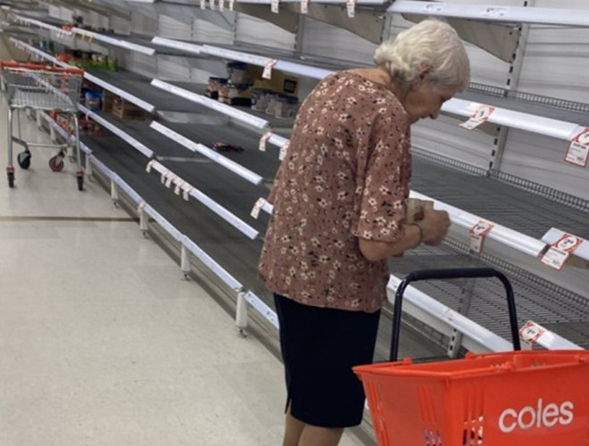 ANTD.VN - Mới đây, hình ảnh cụ bà ở thành phố Melbournr, Australia nhìn chằm chằm vào kệ hàng hóa trống trơn trong siêu thị sau khi bị vơ vét giữa khủng hoảng Covid-19 rồi bật khóc đã làm lấy đi nước mắt của dư luận. Dịch Covid-19 lan rộng đã khiến cuộc sống của người dân trên toàn thế giới bị đảo lộn. Bức ảnh nữ y tá tại Cremona gục ngã vì quá mệt mỏi, cụ bà nói chuyện với chồng qua ô cửa kính hay hình ảnh về giấc ngủ vội của đội ngũ hậu cần giữa sân cách ly Ký túc xá Đại học Quốc gia TP.HCM, Việt Nam là những khoảnh khắc xúc động “gây bão” mạng xã hội giữa thời đại dịch Covid-19.