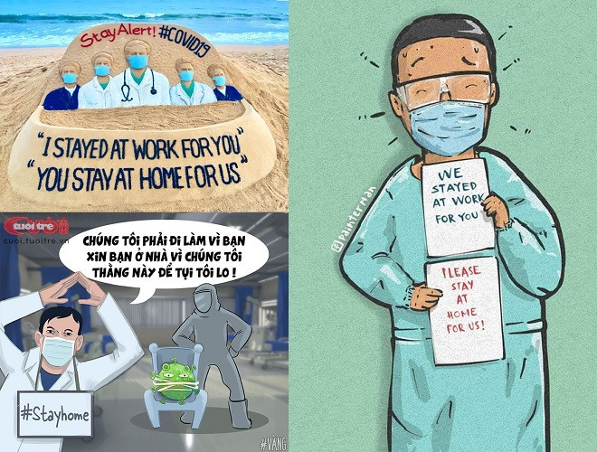 ANTD.VN - Mới đây, đội ngũ nhân viên y tế tại 3 miền đất nước đã "gây bão" giữa mùa dịch Covid-19 khi hưởng ứng phát động phong trào thi đua và lan tỏa các thông điệp tới cộng động như: "Chung sức, vững tâm vượt qua đại dịch"; Hưởng ứng thông điệp Stay home với nội dung "Chúng tôi đi làm vì bạn. Xin bạn hãy ở nhà vì chúng tôi"... Bên cạnh đó, trong mùa dịch Covid-19, những thông điệp khác như: "Hãy đứng yên khi Tổ quốc cần", "Đoàn kết chúng ta nhất định thắng"... cũng gây "sốt" không kém và được ví như liều thuốc tinh thần giúp người dân chiến thắng đại dịch.